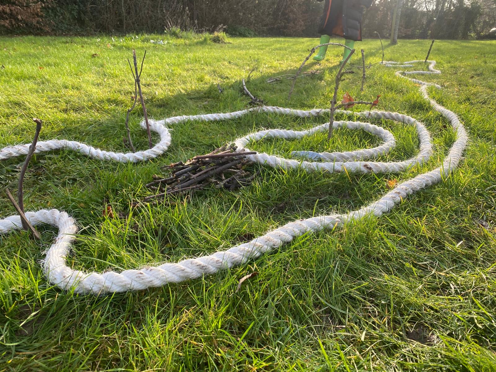 In our forest school learning we created our own mazes. The children worked in partnerships and small groups, using collaboration and communication skills.