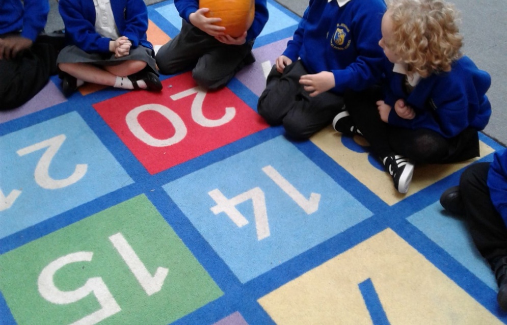 We talked about signs of autumn and looked at the pumpkin. We explored what it felt like and how heavy it was. The children used magnifying glasses to make careful observations of the pumpkin.